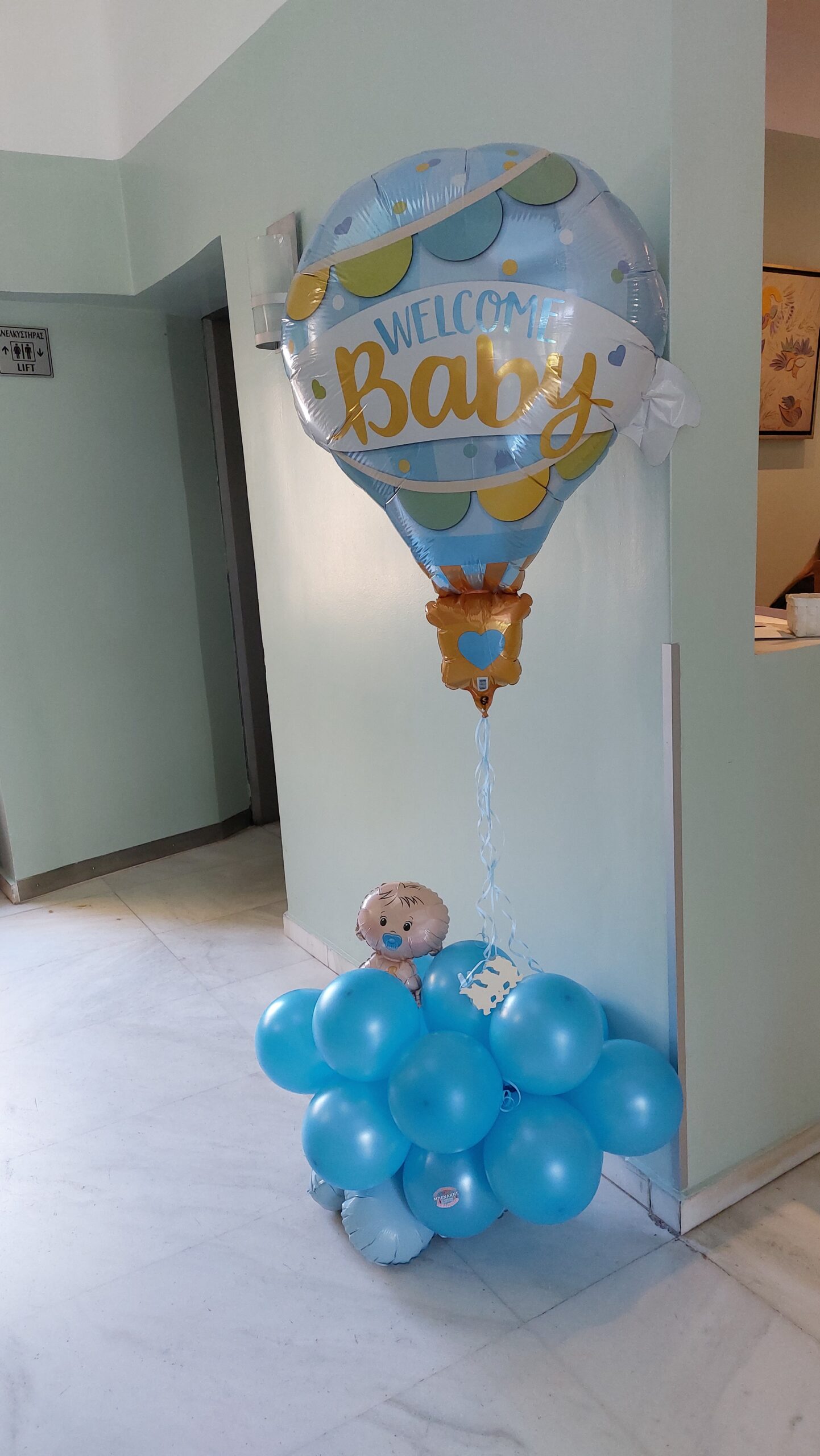 Μπαλόνι αερόστατο με μωρό πάνω σε γαλάζιο σύννεφο. Μία κατασκευή, που θα σας κρατήσει πολλές μέρες κ θα το χαρείτε κ στο σπίτι . Φωτό από την κλινική Καπάκη.