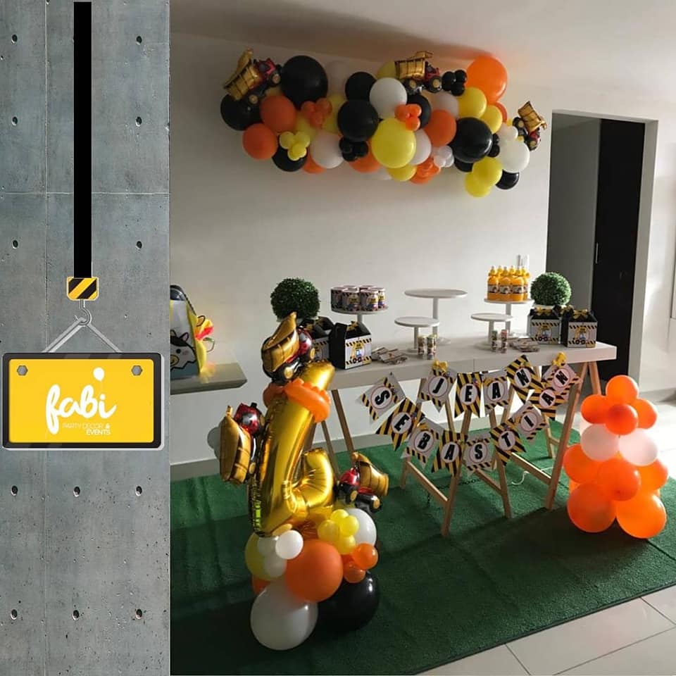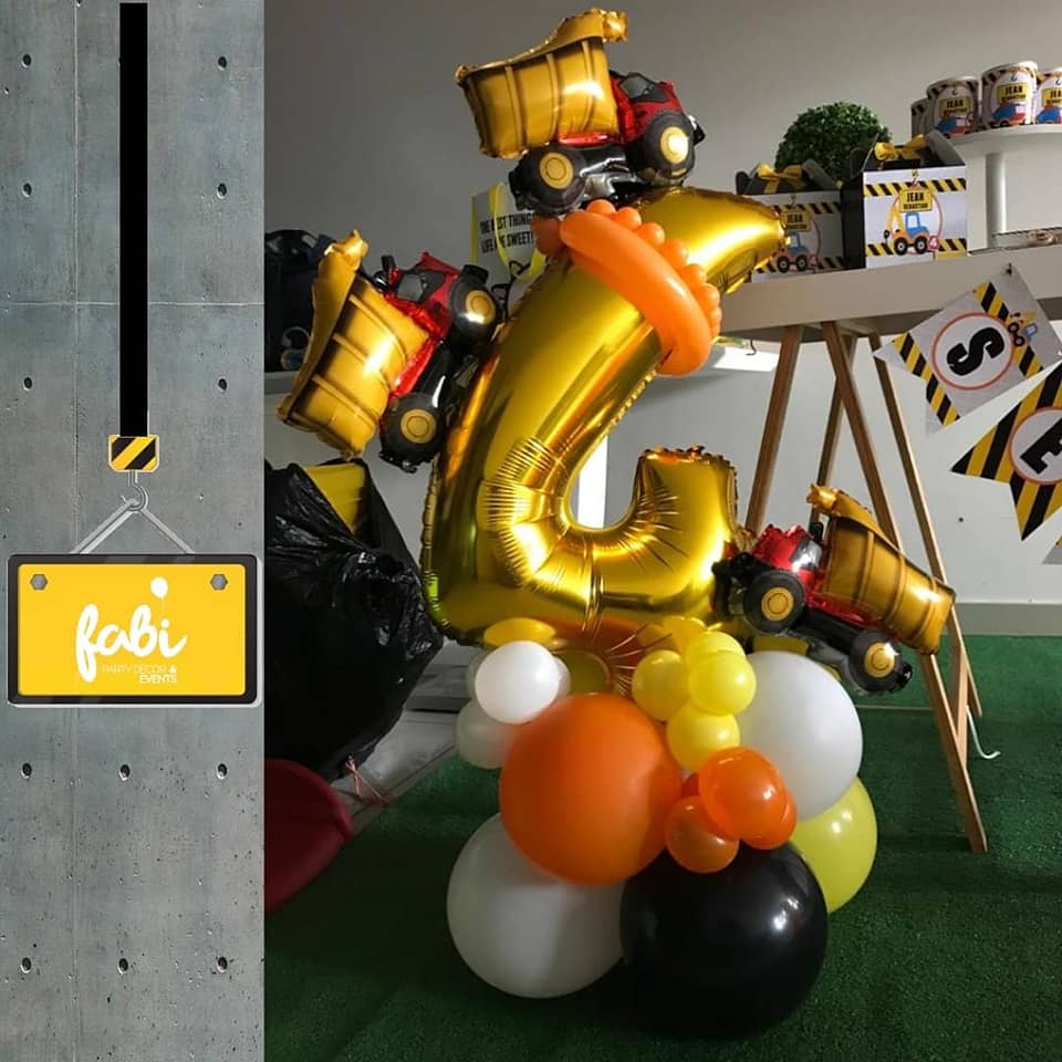 Ένας Αριθμός με μπουλντόζες (τα φορτηγά έχουν εξαντληθεί). Μία γιρλάντα τοίχου κ μπαλόνια στο έδαφος όπως φωτό. Από ένα πλήρης σετ πάρτυ με θεματικά: 8 καπελάκια, 6 πιατάκια ,6 κίτρινα ποτηράκια, 16 χαρτοπετσέτες, 1 τραπεζομάντηλο.
