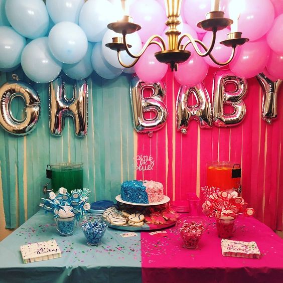 Boy or Girl Surprising Reveal Στην τιμή συμπεριλαμβάνεται 6 γράμματα 1 μέτρου OH BABY, 1 ΓΙΡΛΆΝΤΑ από μπαλόνια, 2 κουρτίνες και 2 τραπεζομάντηλα ροζ κ γαλάζιο.