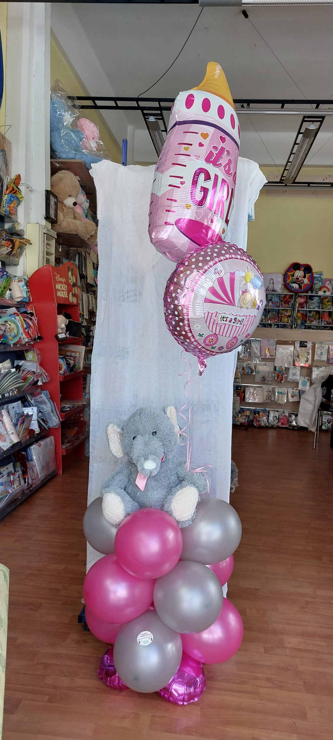 Σύνθεση ροζ με κουδουνίστρα (μπαλόνι)