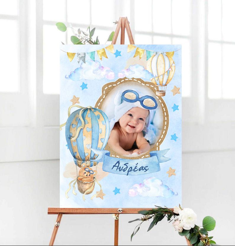 Καμβάς Βάπτισης με φωτογραφία Αερόστατο Αρκουδάκι