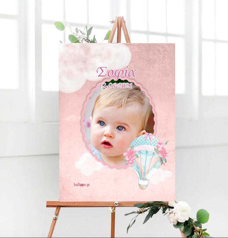 Καμβάς Βάπτισης με φωτογραφία Αερόστατο κορίτσι