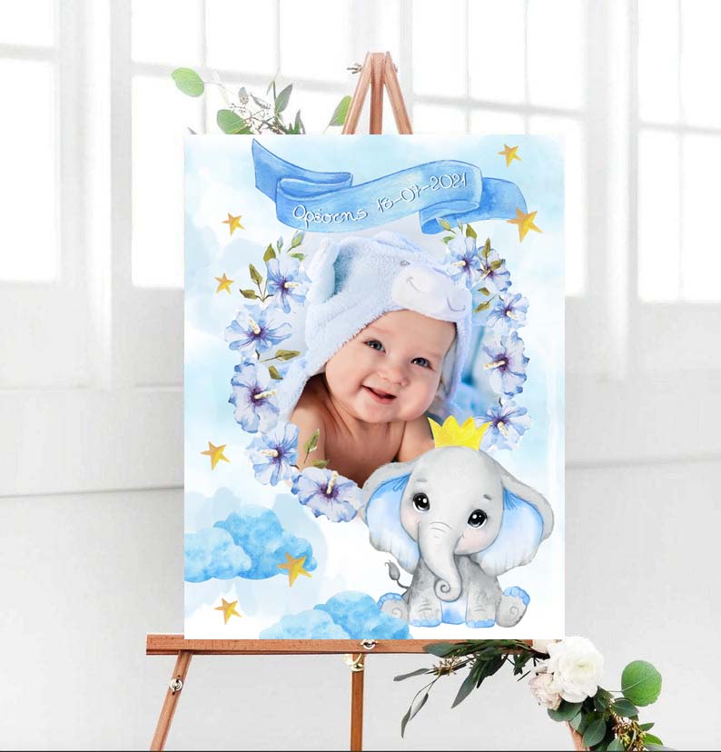 Καμβάς Βάπτισης με φωτογραφία Ελεφαντάκι