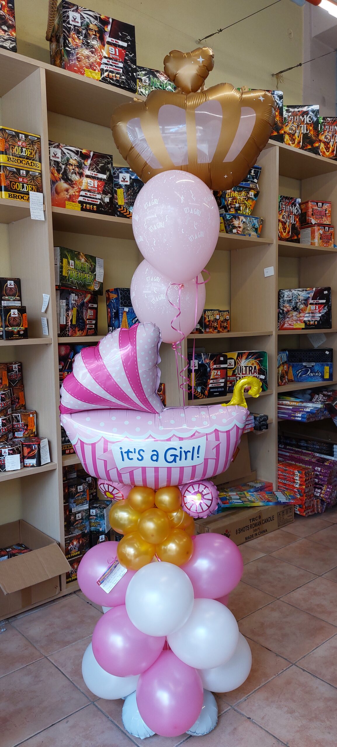Σύνθεση ροζ με κουδουνίστρα (μπαλόνι)