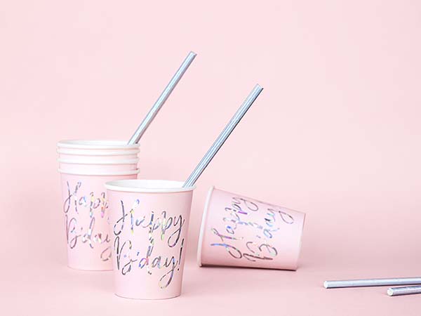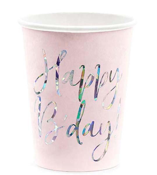Ποτήρια πάρτυ απαλό ροζ “Happy Birthday” (6 τεμ)