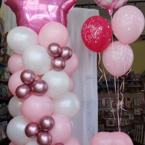Σύνθεση ροζ με κουδουνίστρα (μπαλόνι)